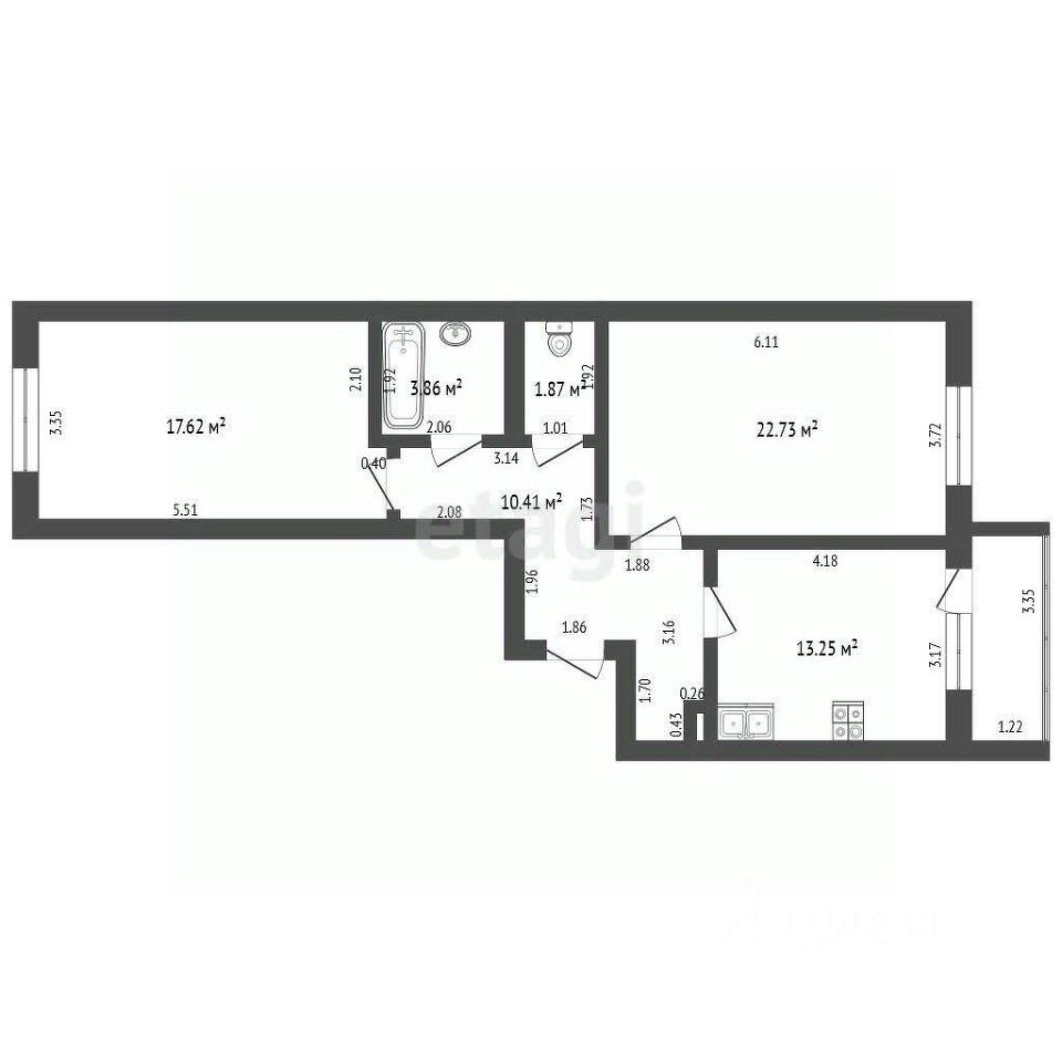 Площадь: 69,7 квадратных метров — одна из самых больших для двухкомнатной квартиры