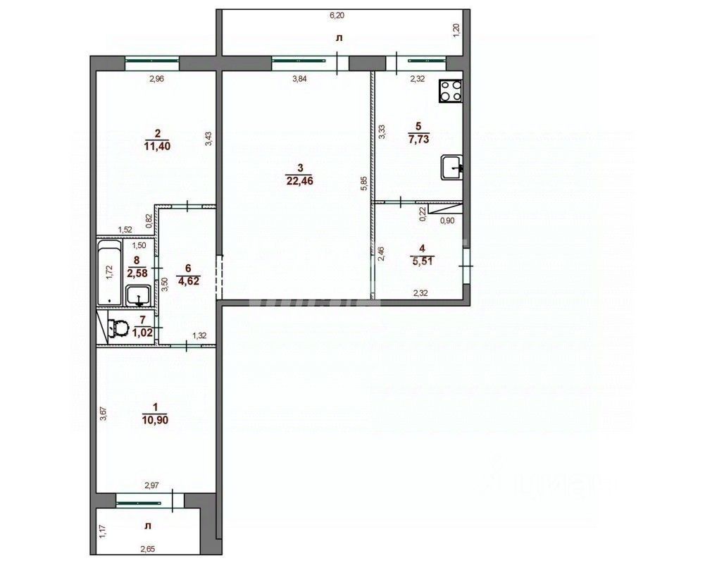 Общая площадь квартиры 66,2 кв.м. Жилые комнаты 22,5 кв.м , 11,4 кв.м, 10,9 кв.м. Санузел в квартире раздельный, также есть вместительная прихожая.