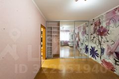 Комната -спальная 19кв.м, в нежных, бело-розовых тонах с большим шкафом -купе. Для удобства в комнате выделена рабочая зона: компьютерный стол с полкам и стеллажами.