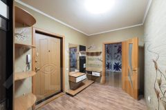 Просторную прихожую дополняет объемная гардеробная для хранения вещей и встроенным сейфом. В зоне входной группы для комфорта и уюта расположены: вешалка, зеркало ,тумба,полочки.