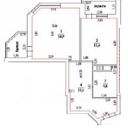Общая площaдь - 44,3 кв.м.(без учёта лоджий)+ лоджия 4 кв.м.+ лоджия 3 кв.м. Кухня - 11,5 кв.м., жилая комната - 18 кв.м., просторная прихожей.