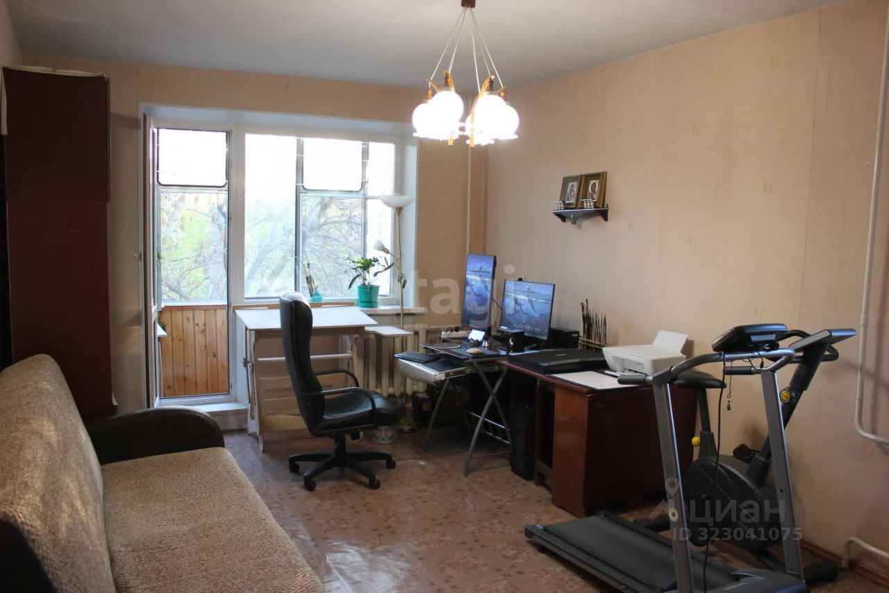Из окон зала, спальни и кухни вид на деревья, за которыми расположена школа. Из бокового окна зала вид на небольшую дорогу и двор.