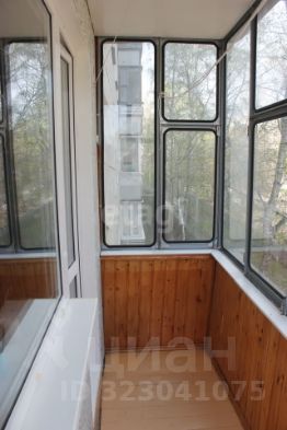 Лоджия застеклена и обшита вагонкой, где встроены два шкафа для хранения.