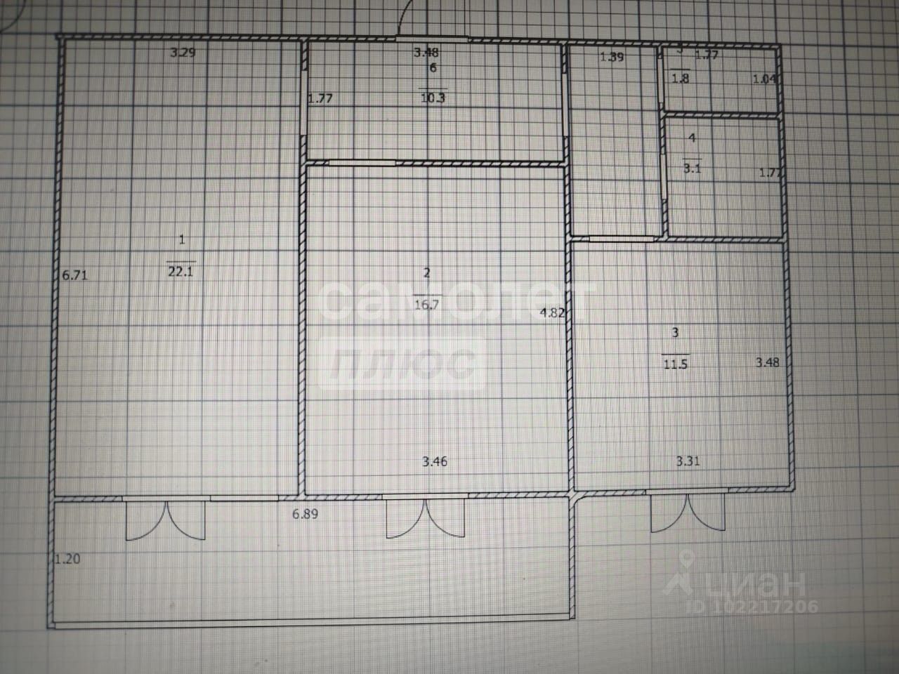 Квартира общей площадью 65,5 кв. м.