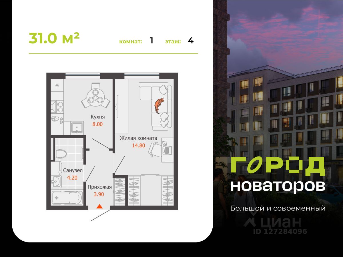 Продается однокомнатная квартира 172 в новостройке ЖК "Город новаторов" по адресу Приволжский федеральный округ, Ульяновская область, Ульяновск, ул. Героя Российской Федерации А.В. Колпакова, д. 7. Общая площадь квартиры - 31.00 кв. м., этаж 4 из 8, секция 3. Тип проекта, по которому построен дом - монолит, компания-застройщик - АО СЗ Железно Симбирск, ГК Железно. Стоимость квартиры - 3556590 Р. Более подробная информация по телефону.
