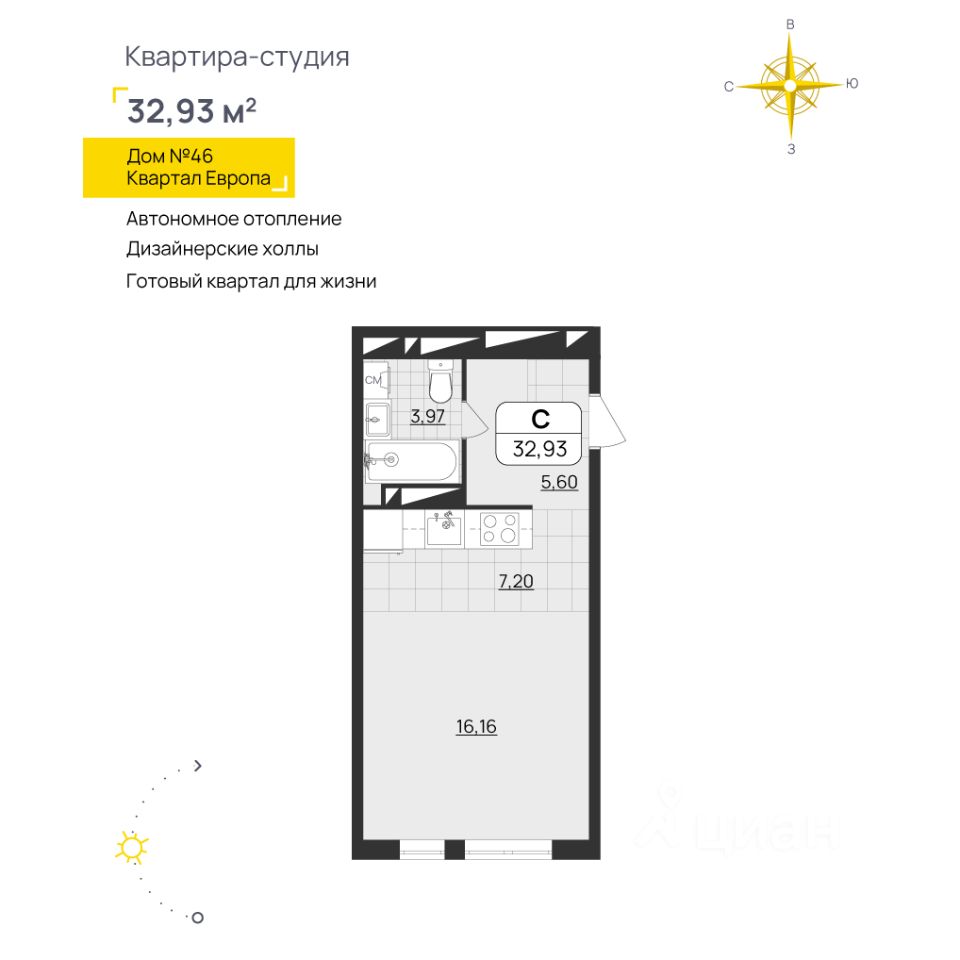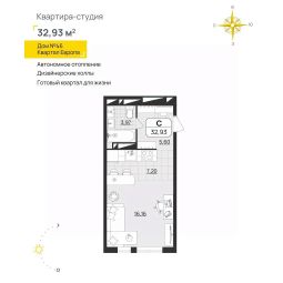 Общая площадь32,93 м²