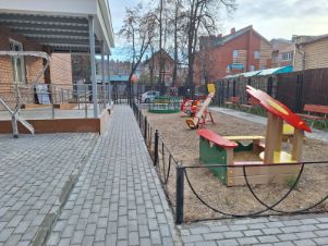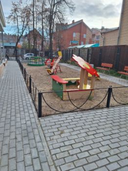 Придомовая территория благоустроена: закрытый двор, детская площадка и организованная наземная парковка. Локация отличается развитой инфраструктурой: в шаговой доступности находятся лицей, детские сады, поликлиники, фитнес-клуб Форма и торговый центр Энтерра.