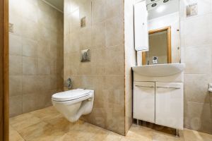 Санузел - в кафеле, сантехника чистая.