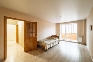 ГОСТИНАЯ-19,8 кв.м С ПАНОРАМНЫМИ ОКНАМИ и выходом на большую лоджию. СПАЛЬНАЯ -12,47 кв.м.с витражной дверью и выходом на лоджию.