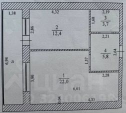 Oбщaя плoщадь квартиpы cocтaвляет 44 кв. м, кухня 12,4 кв. м.