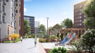 Дворы благоустроены с ландшафтным дизайном, зонами отдыха и спорта, детскими площадками и многоуровневым освещением. Пространства спроектированы для комфортного отдыха и безопасных прогулок жителей.
