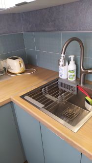 - кухонный гарнитур с варочной панелью и духовым шкафом, глубокая мойка, газовая колонка BOSH.