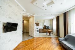 Двухконтурный газовый котел. Солнечная сторона. Имеется кондиционер. Удобная современная планировка. Очень просторный санузел с гигиеническим душем. Высокие потолки (2,8 м). Большие светлые комнаты - гостиная, спальня, детская. Натяжные потолки. На полу плитка и ламинат. Третий этаж открывает вам замечательный вид из окна - видно горизонт.