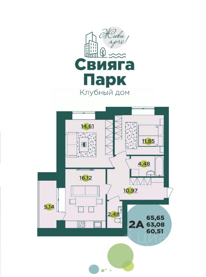 Продаётся 2-комнатная квартира в строящемся доме (Южная д.46 ), срок сдачи: III-кв. 2027, общей площадью 63.08 кв.м., на 9 этаже. Новый жилой комплекс "по ул. Южная" от застройщика "СВИЯГА-ИНВЕСТ" расположен по адресу Россия, Ульяновск, Южная улица, 46.