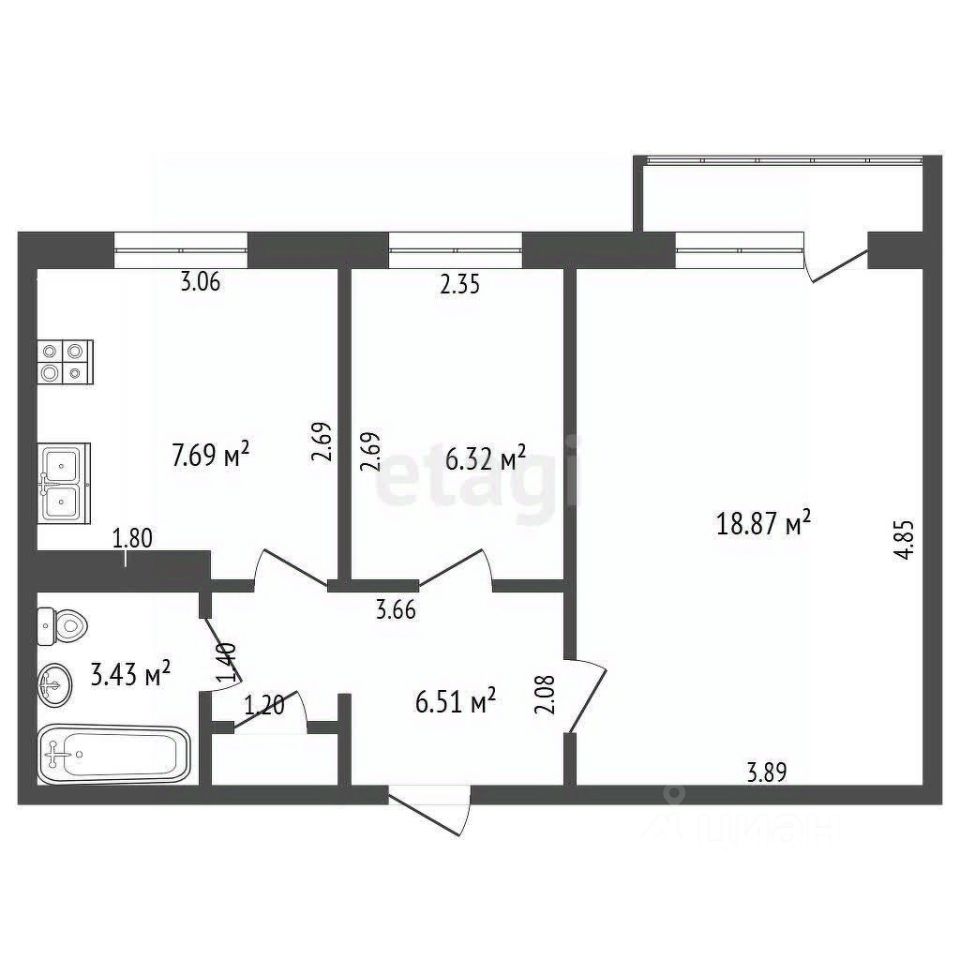 Квартира готова для проживания, установлены пластиковые окна, остается холодильник, стиральная машинка, телевизор, мебель.