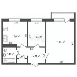 Зал 18 к в м, из зала есть выход на застекленный балкон. В зале остается стенка, мягкая мебель.