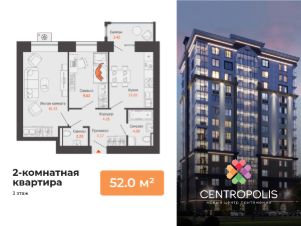 В центральном квартале Ульяновска продается 2-комнатная квартира площадью 52.00 кв. м. Квартира расположена на 3 этаже дома 6 в жилом комплексе комфорт-класса Centropolis ("Центрополис").