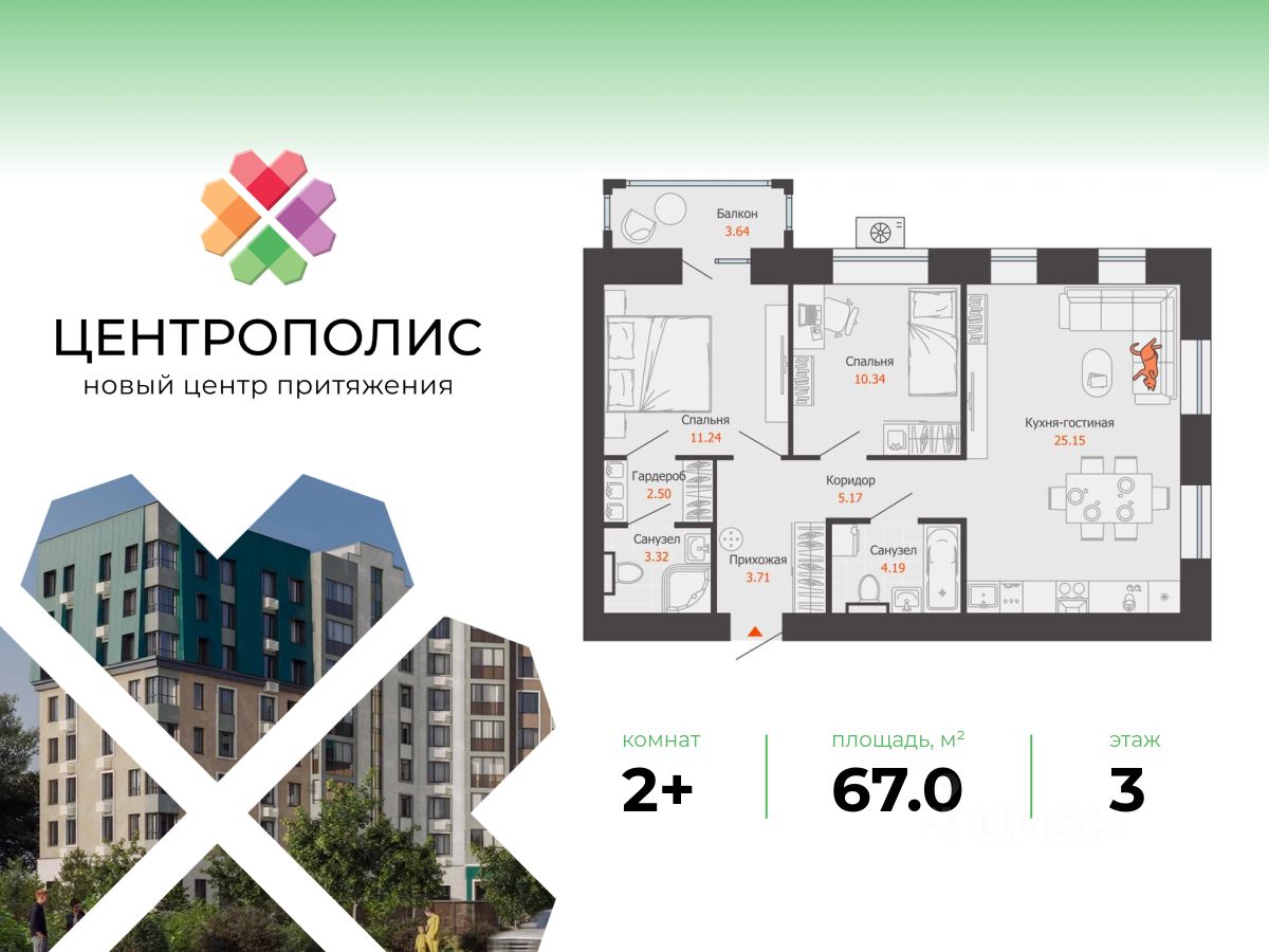 В центральном квартале Ульяновска продается 2-комнатная квартира площадью 67.00 кв. м. Квартира расположена на 3 этаже дома 6 в жилом комплексе комфорт-класса Центрополис.