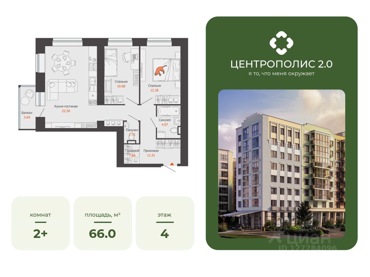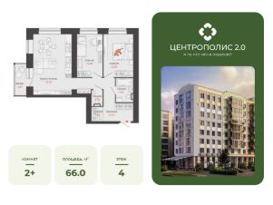 В Заволжском районе Ульяновска продается 2-комнатная квартира площадью 66.00 кв. м. Квартира расположена на 4 этаже 9 корпуса в жилом комплексе CENTROPOLIS 2.0 ("Центрополис 2.0").