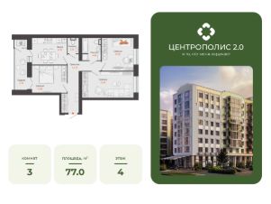 В Заволжском районе Ульяновска продается 3-комнатная квартира площадью 77.00 кв. м. Квартира расположена на 4 этаже 9 корпуса в жилом комплексе CENTROPOLIS 2.0 ("Центрополис 2.0").
