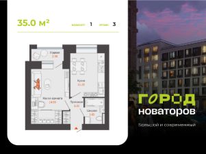 В продаже 1-комнатная квартира площадью 35.00 кв. м в жилом комплексе "Город новаторов" в Ульяновске.
