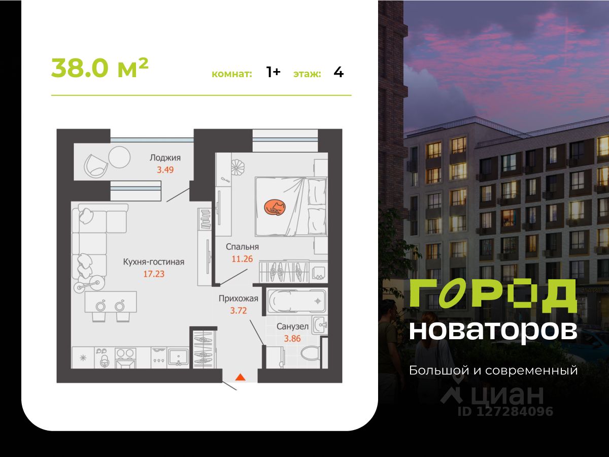 В продаже 1-комнатная квартира площадью 38.00 кв. м в жилом комплексе "Город новаторов" в Ульяновске. Проект реализует федеральный девелопер "Железно". "Город новаторов" - масштабный жилой проект площадью 67 Га, созданный в концепции 15-минутного города. Вся необходимая инфраструктура для жизни, отдыха, работы и обучения расположена в пешей доступности внутри проекта или рядом с ним. Архитектура и среда Жилой комплекс выполнен в формате среднеэтажной переменной застройки с акцентными домами. Архитектурные решения вдохновлены природным ландшафтом территории: рельефом, холмами и водными объектами. В отделке фасадов используются кирпич, штукатурка, металл и природные текстуры. Каждый дом имеет индивидуальный облик, формируя цельную и гармоничную городскую среду. Лобби и общественные пространства Интерьеры лобби выполнены по индивидуальным дизайн-проектам. В отделке используются натуральные материалы, минималистичные формы и современные акценты. В подъездах предусмотрены колясочные и велосипедные, а также лапомойки для домашних животных. Дворы без машин В проекте реализована концепция закрытых дворов без автомобилей. Дворы благоустроены с ландшафтным дизайном, зонами отдыха и спорта, детскими площадками и многоуровневым освещением. Пространства спроектированы для комфортного отдыха и безопасных прогулок жителей. Технологии и инфраструктура • система "умный дом" с возможностью подключения дополнительных опций; • мобильное приложение "Мажордом" для взаимодействия с управляющей компанией и сервисами дома; • собственная набережная, бульвар, городская площадь с торговым центром; • школы, детские сады, поликлиника и коммерческие помещения на первых этажах. Квартира подойдет как для собственного проживания, так и для инвестиций. Подробные условия приобретения и актуальные предложения уточняйте у менеджеров отдела продаж.