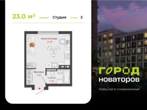 В продаже студия площадью 23.00 кв. м в жилом комплексе "Город новаторов" в Ульяновске.