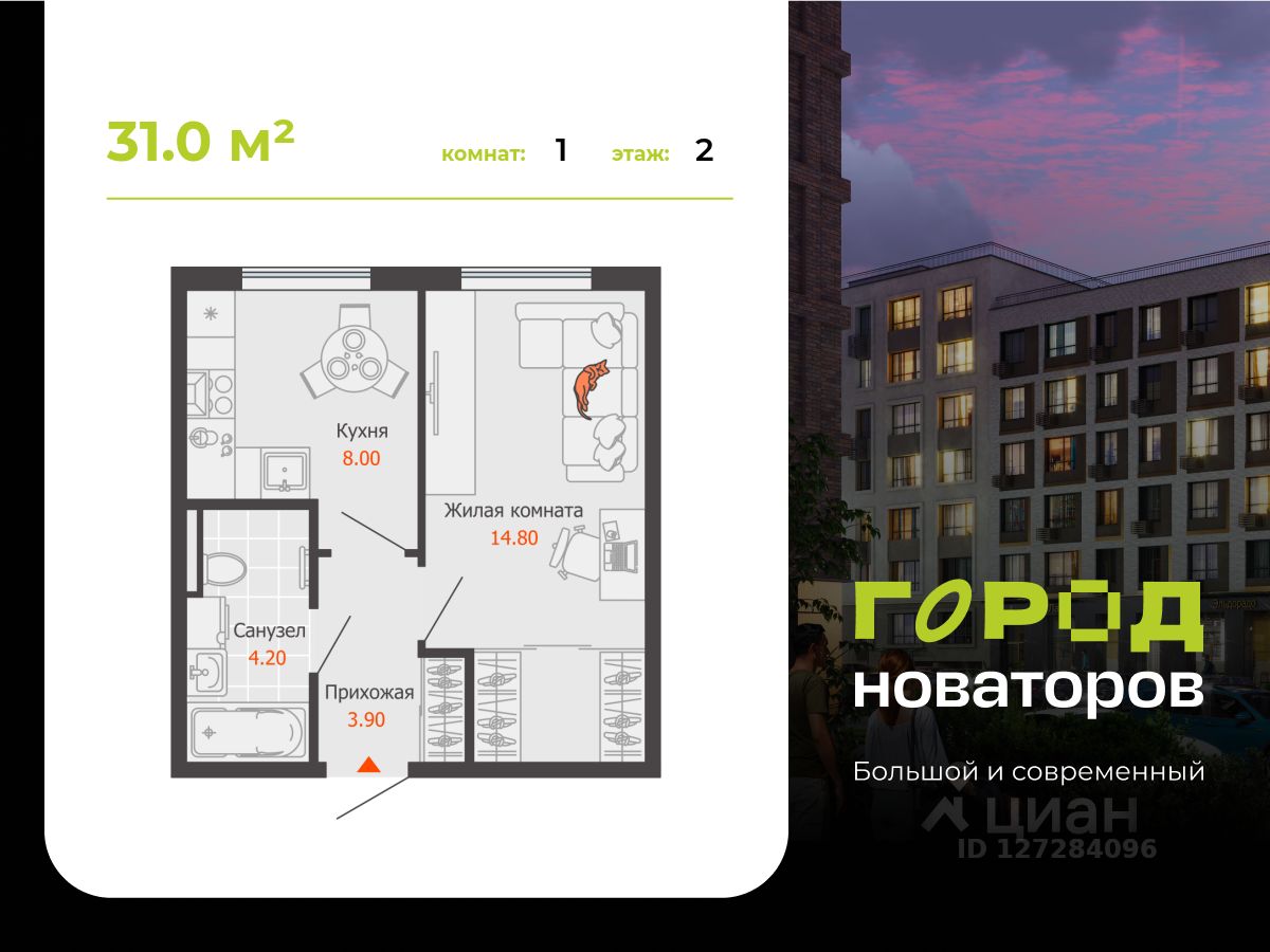 Продается однокомнатная квартира 152 в новостройке ЖК "Город новаторов" по адресу Приволжский федеральный округ, Ульяновская область, Ульяновск, ул. Героя Российской Федерации А.В. Колпакова, д. 7. Общая площадь квартиры - 31.00 кв. м., этаж 2 из 8, секция 3. Тип проекта, по которому построен дом - монолит, компания-застройщик - АО СЗ Железно Симбирск, ГК Железно. Стоимость квартиры - 3528780 Р. Более подробная информация по телефону.