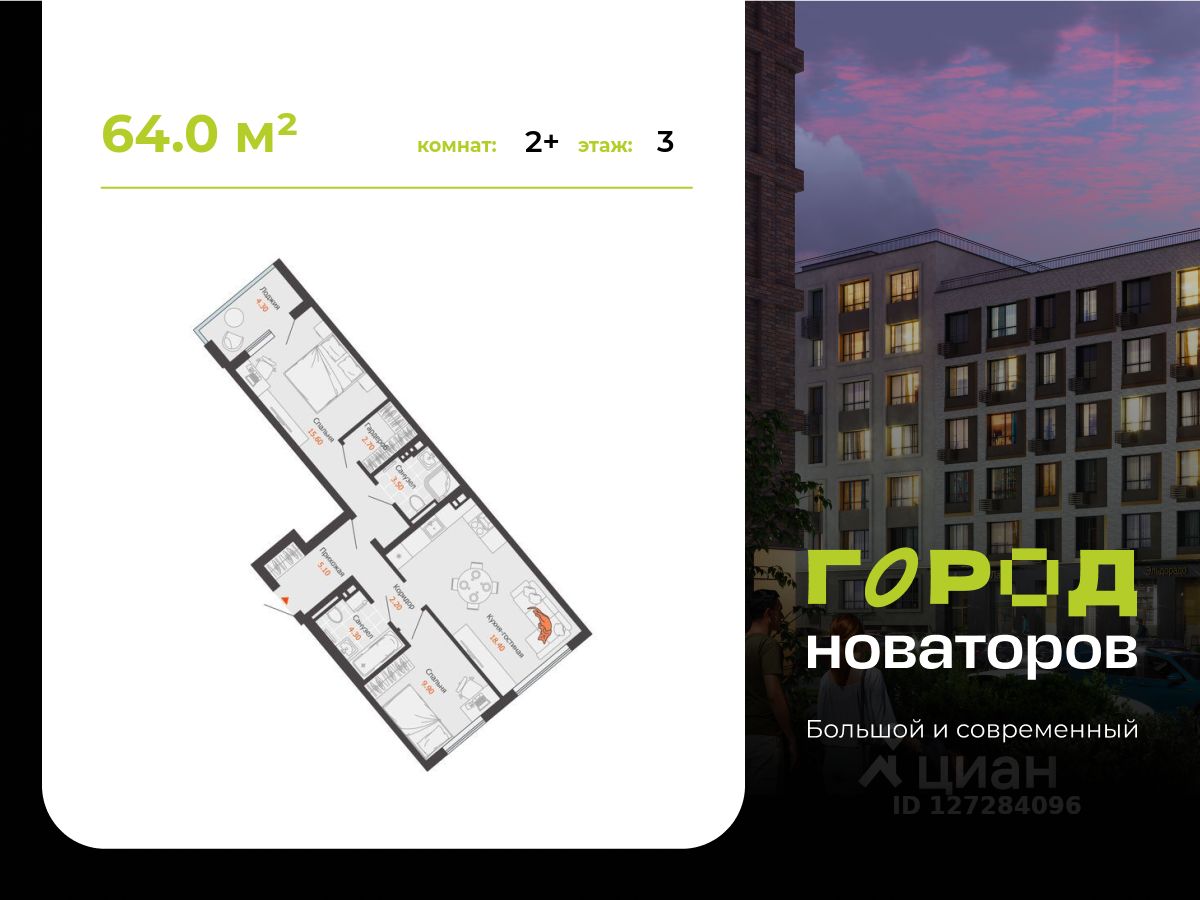 В продаже 2-комнатная квартира площадью 64.00 кв. м в жилом комплексе "Город новаторов" в Ульяновске. Проект реализует федеральный девелопер "Железно". "Город новаторов" - масштабный жилой проект площадью 67 Га, созданный в концепции 15-минутного города. Вся необходимая инфраструктура для жизни, отдыха, работы и обучения расположена в пешей доступности внутри проекта или рядом с ним. Архитектура и среда Жилой комплекс выполнен в формате среднеэтажной переменной застройки с акцентными домами. Архитектурные решения вдохновлены природным ландшафтом территории: рельефом, холмами и водными объектами. В отделке фасадов используются кирпич, штукатурка, металл и природные текстуры. Каждый дом имеет индивидуальный облик, формируя цельную и гармоничную городскую среду. Лобби и общественные пространства Интерьеры лобби выполнены по индивидуальным дизайн-проектам. В отделке используются натуральные материалы, минималистичные формы и современные акценты. В подъездах предусмотрены колясочные и велосипедные, а также лапомойки для домашних животных. Дворы без машин В проекте реализована концепция закрытых дворов без автомобилей. Дворы благоустроены с ландшафтным дизайном, зонами отдыха и спорта, детскими площадками и многоуровневым освещением. Пространства спроектированы для комфортного отдыха и безопасных прогулок жителей. Технологии и инфраструктура • система "умный дом" с возможностью подключения дополнительных опций; • мобильное приложение "Мажордом" для взаимодействия с управляющей компанией и сервисами дома; • собственная набережная, бульвар, городская площадь с торговым центром; • школы, детские сады, поликлиника и коммерческие помещения на первых этажах. Квартира подойдет как для собственного проживания, так и для инвестиций. Подробные условия приобретения и актуальные предложения уточняйте у менеджеров отдела продаж.
