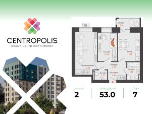 В центральном квартале Ульяновска продается 2-комнатная квартира площадью 53.00 кв. м. Квартира расположена на 7 этаже дома 6 в жилом комплексе комфорт-класса Centropolis ("Центрополис").