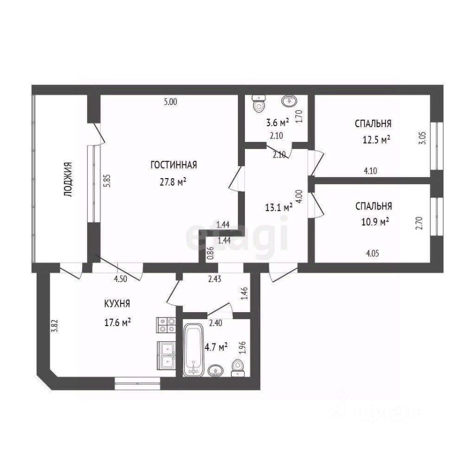 Планировка квартиры включает в себя: большую гостинная 26 кв.м, две отдельные спальни, просторную кухня 18 кв.м и два отдельных санузла, что добавляет комфорта и удобства для проживания.