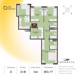 Продается 4-комн. квартира комфорт-класса на 6 этаже в жилом комплексе Гордость на Ленкома