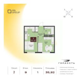Общая площадь35,92 м²