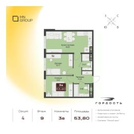 Продается 3-комн. квартира комфорт-класса на 9 этаже в жилом комплексе Гордость на Ленкома