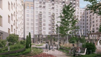 На внутренней территории жилого комплекса предусмотрен закрытый двор c зонами для работы и отдыха, спортивными и детскими площадкми. Продуманный ландшафтный дизайн с разнообразными растениями создаст дополнительный уют на территории двора. Благодаря сквозным подъездам легко попасть на улицу и двор.