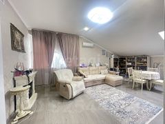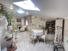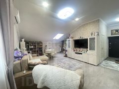 В квартире сделан качественный ремонт. Кухня-гостиная, в которой расположено окно мансардного типа, которое дает дополнительный источник освещения над обеденной зоной.