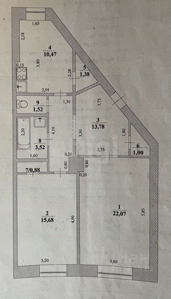 Двухкомнатная квартира площадью 70,3 кв. м расположена на третьем этаже четырехэтажного кирпичного дома в центральном районе города по адресу ул. Третьего Интернационала, 2.