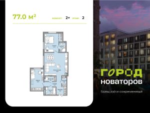 В продаже 2-комнатная квартира площадью 77.00 кв. м в жилом комплексе "Город новаторов" в Ульяновске.