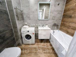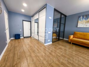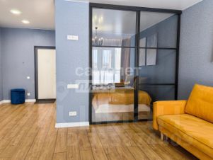 В квартире выполнен современный ремонт в базовых тонах. Использованы качественные материалы. В комнате и на кухне постелен ламинат, в санузле - керамическая плитка. На стенах поклеены дорогие обои. Потолки натяжные, светильники установлены. В кухне установлен кухонный гарнитур с техникой. В комнате - диван, кондиционер, телевизор. Санузел оснащен хорошей сантехникой.