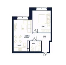 Продаётся 1-комнатная квартира в строящемся доме (дом 5), срок сдачи: I-кв. 2026, общей площадью 33.93 кв.м., на 2 этаже.