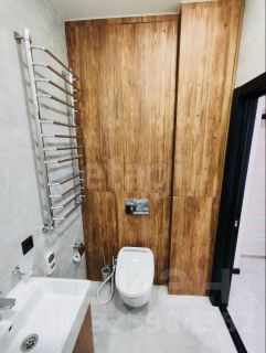 Совмещенная сантехника оснащена душевой зоной, системой очистки воды, электронным унитазом и теплым полом. В отделке использованы качественные материалы: ламинат, паркет, керамогранит, натяжные потолки с декоративной подсветкой и обои под покраску.