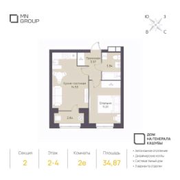 Продается 2-комн. квартира комфорт-класса на 3 этаже в клубном доме на Генерала Кашубы