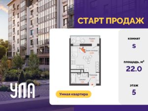 В новом доме комфорт-класса продается студия площадью 22.00 кв. м с чистовой отделкой.. Квартира находится в доме 3 в жилом комплексе УЛЛА от федерального застройщика "Железно".