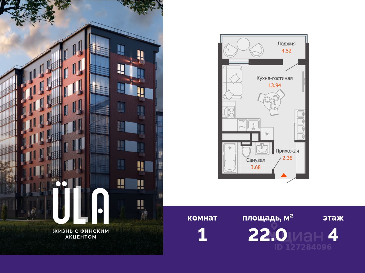 Финальный дом проекта ULLA! В новом доме комфорт-класса продается студия площадью 22.00 кв. м . Квартира находится в доме 3 в жилом комплексе ULLA от федерального застройщика "Железно". Транспортная доступность и окружение - 2 автобусные остановки в минуте ходьбы; - 10 минут до парка в сосновом бору "40 лет ВЛКСМ"; - Удобный выезд к Президентскому мосту и Димитровградскому шоссе; - Прибрежный парк, яхт-клуб и пляж у реки Волги в 10 минутах на машине. Концепция архитектуры Новый корпус в полной мере отражает архитектурную концепцию всего жилого комплекса. Внешний вид дома "Комфорта" вдохновлен формами и оттенками природы. В отделке сочетаются керамические панели и мокрый фасад. Архитектурные особенности подчеркивает декоративное освещение. В итоге получился лаконичный и в то же время стильный облик, соразмерный человеку - именно в такой обстановке люди получают психологическое ощущение комфорта. Благоустройство с финским акцентом Для удобства и безопасности жителей дворы жилого комплекса находятся на огороженной территории. В природный ландшафт, созданный дизайнерами, гармонично вплетены игровые площадки VIKING для детей всех возрастов, спортивный комплекс "Гранит" для активностей на свежем воздухе, уютные зоны отдыха, качели и беседки с навесами. Главным местом притяжения станет озелененная площадь, в благоустройстве которой использованы натуральные материалы, а акцентными элементами выступают топиарная фигура "Викинг" и продуманное освещение. Стильные МОП Общий стиль проекта продолжают входные группы. В каждом подъезде реализован авторский дизайн, где акцент сделан на практичность и современный минимализм. Удобная и понятная навигация позволяет гостям быстро найти нужную квартиру. Для колясок и велосипедов предусмотрено специальное помещение, доступ в которое есть только у жителей дома. Дополнительные преимущества: - Собственная УК; - Система "Умная квартира" от Мажордом; - Большой выбор планировочных решений; - Различные варианты отделки на выбор. Успейте приобрести квартиру на выгодных условиях! Чтобы узнать подробности, обращайтесь за консультацией по телефону.