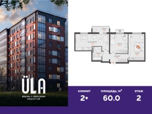 В новом доме комфорт-класса продается 2-комнатная квартира площадью 60.00 кв. м . Квартира находится в доме 3 в жилом комплексе ULLA от федерального застройщика "Железно".