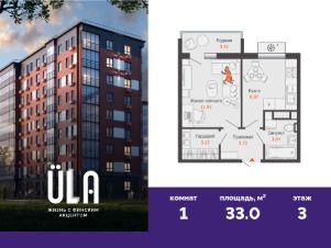 Финальный дом проекта ULLA! В новом доме комфорт-класса продается 1-комнатная квартира площадью 33.00 кв. м . Квартира находится в доме 3 в жилом комплексе ULLA от федерального застройщика "Железно". Транспортная доступность и окружение - 2 автобусные остановки в минуте ходьбы; - 10 минут до парка в сосновом бору "40 лет ВЛКСМ"; - Удобный выезд к Президентскому мосту и Димитровградскому шоссе; - Прибрежный парк, яхт-клуб и пляж у реки Волги в 10 минутах на машине. Концепция архитектуры Новый корпус в полной мере отражает архитектурную концепцию всего жилого комплекса. Внешний вид дома "Комфорта" вдохновлен формами и оттенками природы. В отделке сочетаются керамические панели и мокрый фасад. Архитектурные особенности подчеркивает декоративное освещение. В итоге получился лаконичный и в то же время стильный облик, соразмерный человеку - именно в такой обстановке люди получают психологическое ощущение комфорта. Благоустройство с финским акцентом Для удобства и безопасности жителей дворы жилого комплекса находятся на огороженной территории. В природный ландшафт, созданный дизайнерами, гармонично вплетены игровые площадки VIKING для детей всех возрастов, спортивный комплекс "Гранит" для активностей на свежем воздухе, уютные зоны отдыха, качели и беседки с навесами. Главным местом притяжения станет озелененная площадь, в благоустройстве которой использованы натуральные материалы, а акцентными элементами выступают топиарная фигура "Викинг" и продуманное освещение. Стильные МОП Общий стиль проекта продолжают входные группы. В каждом подъезде реализован авторский дизайн, где акцент сделан на практичность и современный минимализм. Удобная и понятная навигация позволяет гостям быстро найти нужную квартиру. Для колясок и велосипедов предусмотрено специальное помещение, доступ в которое есть только у жителей дома. Дополнительные преимущества: - Собственная УК; - Система "Умная квартира" от Мажордом; - Большой выбор планировочных решений; - Различные варианты отделки на выбор. Успейте приобрести квартиру на выгодных условиях! Чтобы узнать подробности, обращайтесь за консультацией по телефону.