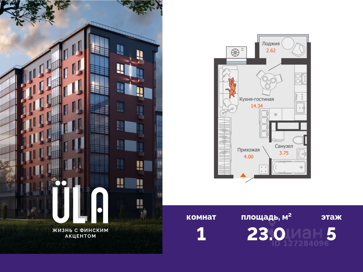 В новом доме комфорт-класса продается студия площадью 23.00 кв. м . Квартира находится в доме 3 в жилом комплексе ULLA от федерального застройщика "Железно".