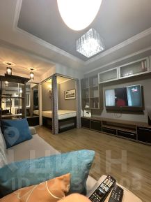 Комната с грамотным зонированием: телевизор, мощный саундбар 360 Вт, кондиционер, качественная мебель без повреждений.