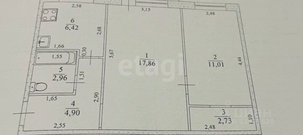 - площадь кухни: 6 м2;