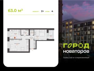 В продаже 2-комнатная квартира площадью 63.00 кв. м в жилом комплексе "Город новаторов" в Ульяновске.